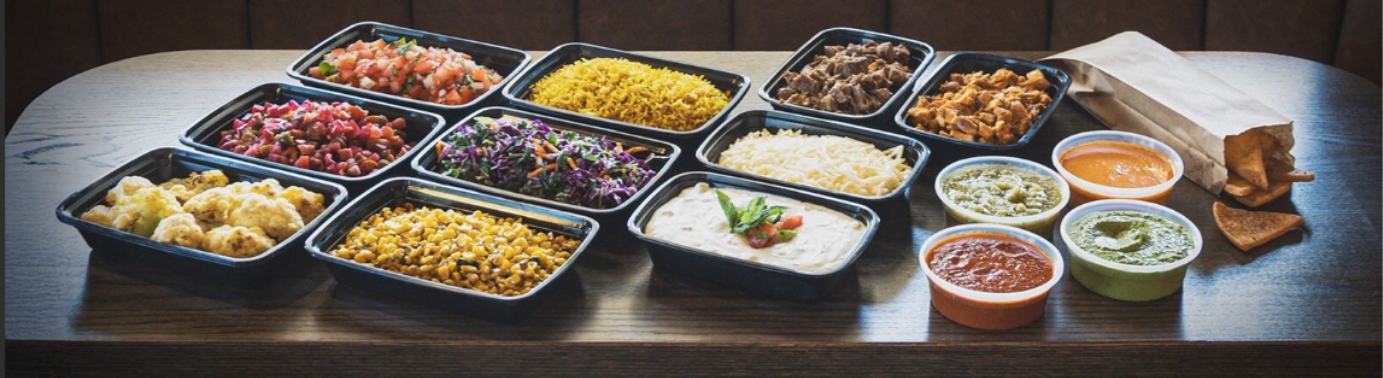 Carnitas, Calrose rice, Romano beans, salsa verde, sweet potatoes, pico de gallo, Monterey Jack cheese, Aleppo pico, zhug vinaigrette, tortilla